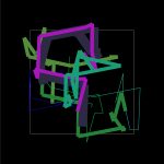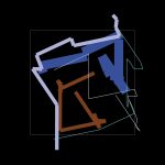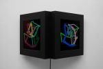 Before he got access to the institute of Meteorology, some of his earliest drawings were executed on a light pen plotter (1969) and also on a large Zuse flatbed plotter at the University of Darmstadt in Germany (1970). Mohr’s first major museum exhibition, Une esthétique programmée, took place in 1971 at the Musée d’Art Moderne de la Ville de Paris. It has since become known as the first solo show in a museum of works entirely calculated and drawn by a digital computer. During the exhibition, Mohr demonstrated his process of drawing his computer-generated imagery using a Benson flatbed plotter for the first time in public. Mohr’s pieces have been based on the logical structure of cubes and hypercubes—including the lines, planes, and relationships among them—since 1973.